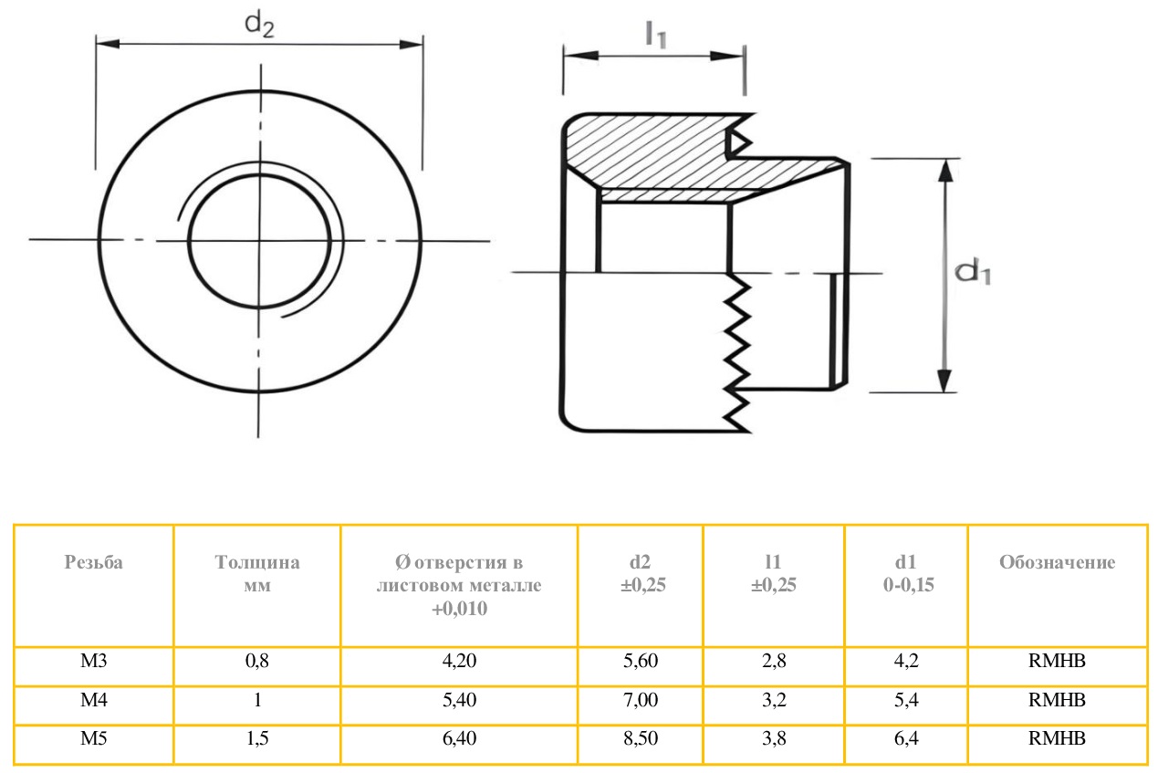 M5 HANK SERT MINI 10 SWG ST/ RMHB-M5-10 gz Гайка развальцовочная резьбовая М5 стальная оцинкованная для толщины металла 3,0 мм